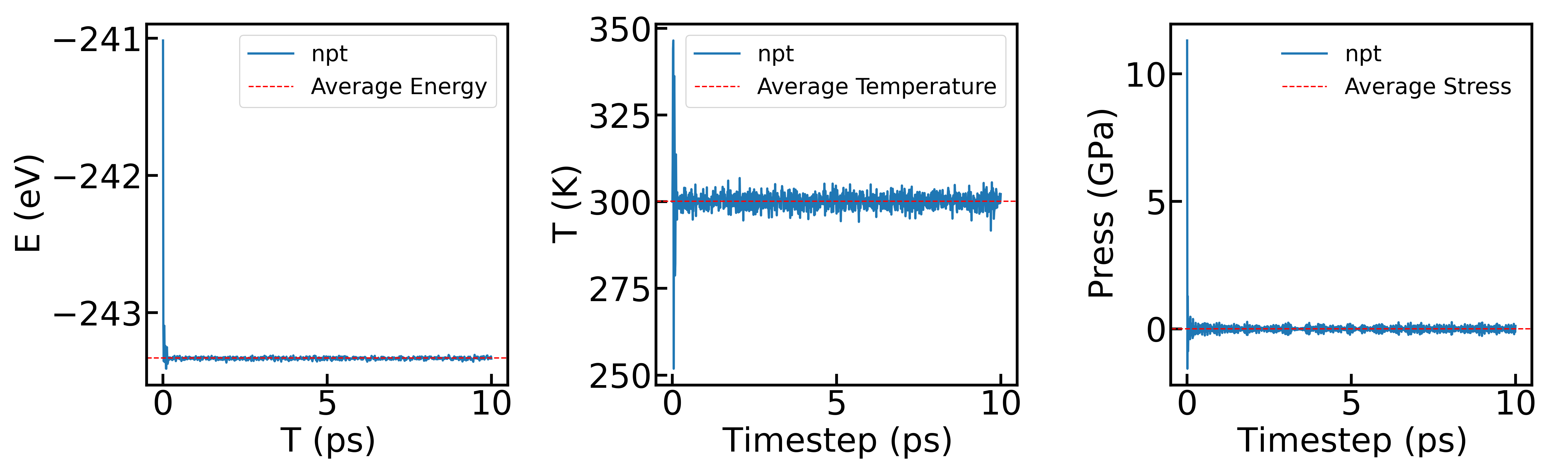 ITER: 电子步数ETOT/eV: 体系总能EDIFF/eV: 能量差DRHO: 电荷密度差TIME/s: 单电子步计算时间TOTAL-PRESSURE: 体系压强